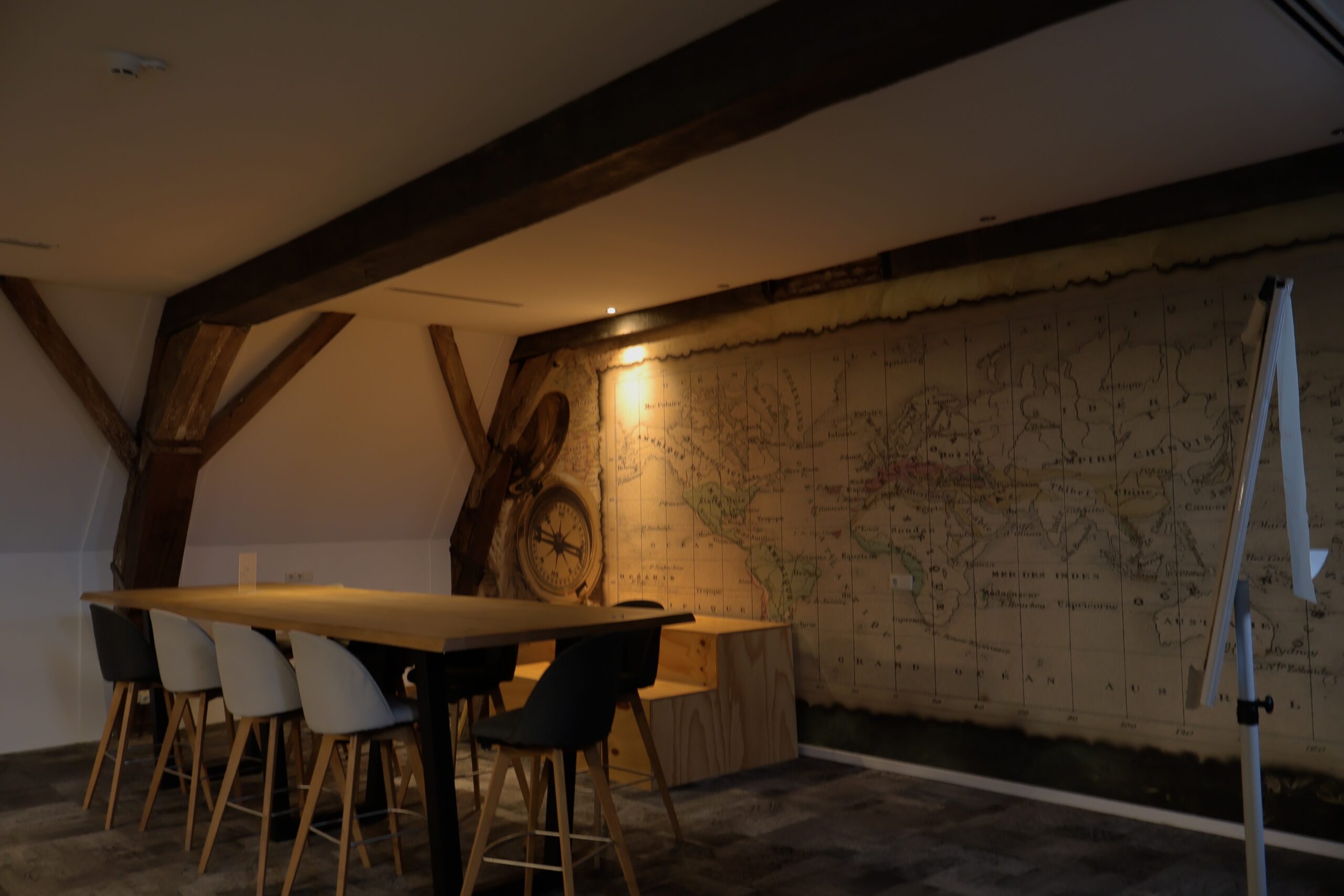 De zaal is ook te huur in combinatie met de projectzolder, dan kan deze worden gebruikt als ruimte voor feedback, besloten gesprekken of presentaties.